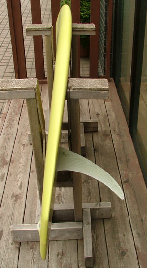 このミニハルは完全なディスプレイスメントのボトムではありません。レールはボトム側にボリュームを持たせ、レールの周辺を軽くアッパーにする程度で仕上げています。ボードのセンターはほぼフラット。緩いアッパーレールでも十分にハルの感覚を楽しむことができる上、コントロール性も増すのでより多くのコンディションで楽しむことができます。