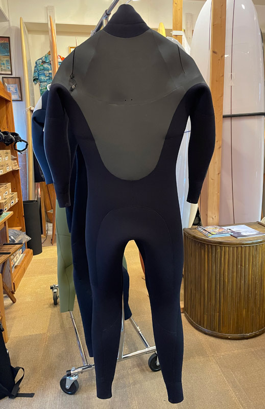 上の画像をよく見て下さい。ハンガーにただぶら下げて撮影した画像です。そんなの見ればわかることです。でも、ただハンガーにぶら下げただけの状態でこんな風にきれいなカタチ、着用時に近い形になるウェットスーツは初めてです。美しいんです。