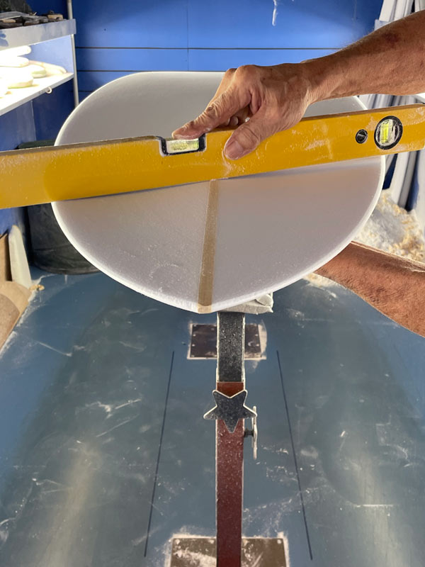 10’6” PRIMO GLIDERのシェイプが始まりました~。きれいなアウトラインを作っていただきました。
