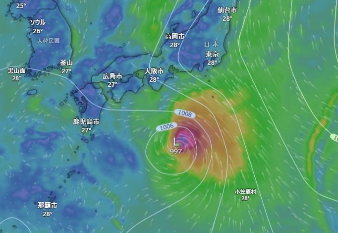上は、JTWC(米軍合同台風警報センター)です。昨日は確か、1日(日)の未明にかけて関東の南を抜けて行く予想になっていましたが、先ほど見ると日本時間の2日(月)15時にはまだ関西地方を通過中ということになっています。