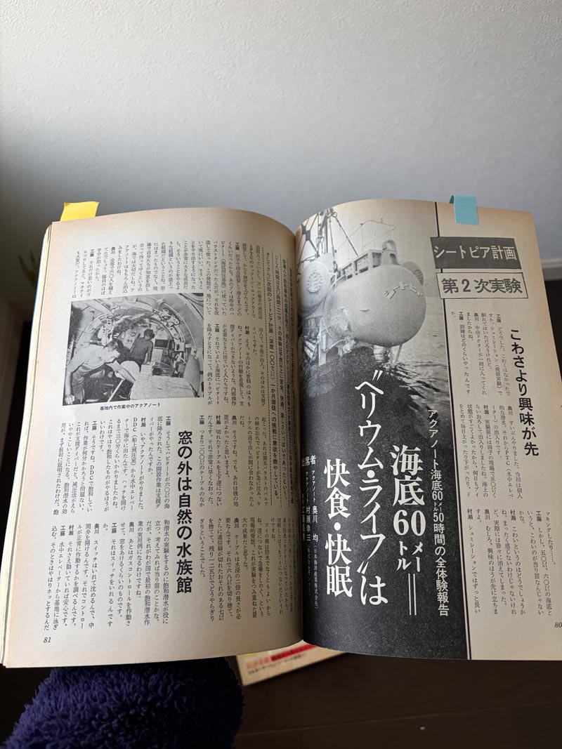 海底で暮らす、海洋実験。この雑誌の所有者は、この実験に参加された方だそうです。もちろんダイビングの記事もたくさんです。