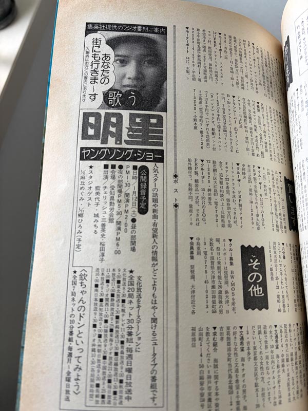 そして、ときどき出てくる、こんな広告も懐かしかったりします。