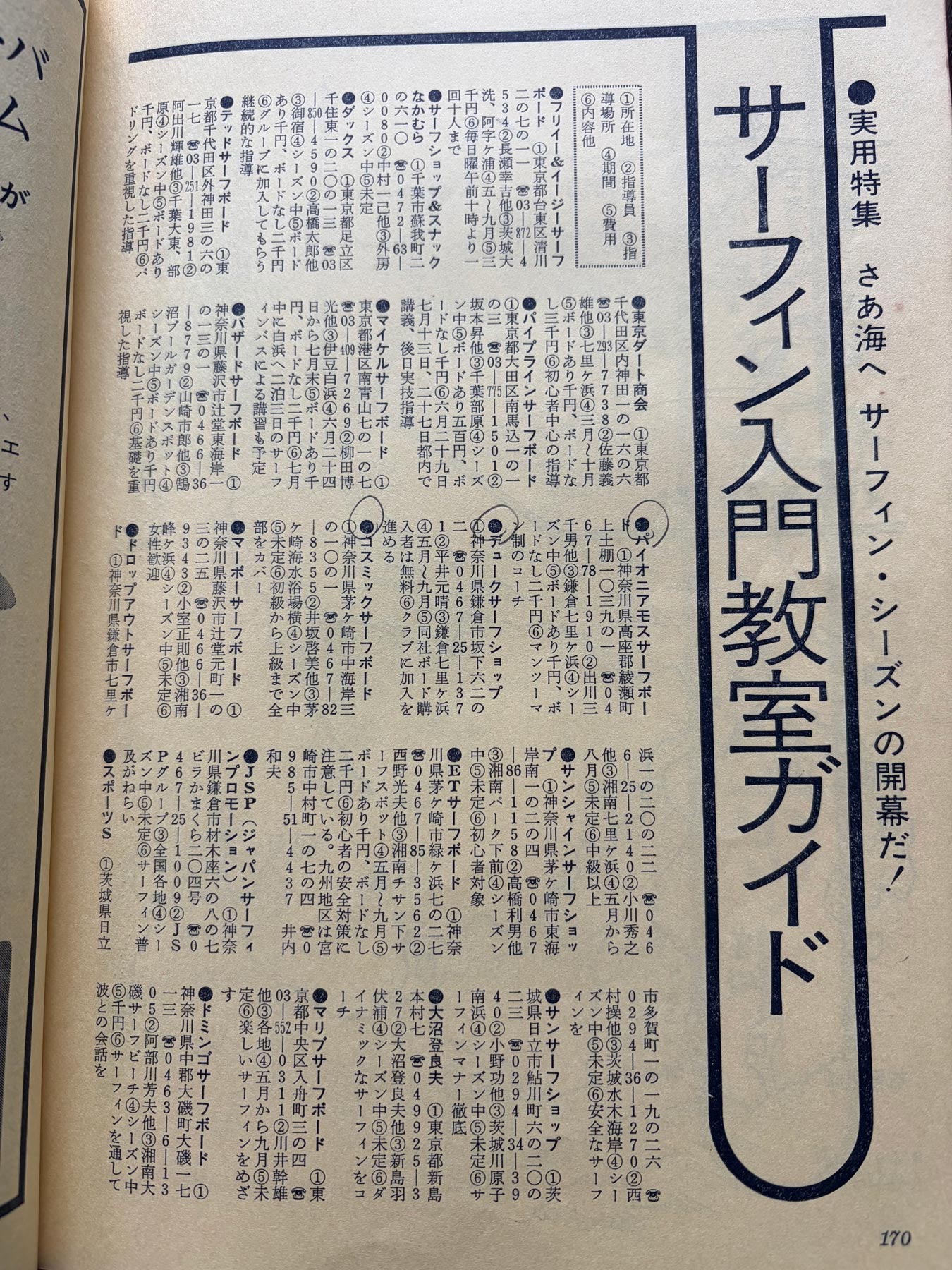 当時のサーフショップガイドです。拡大すると読めます。