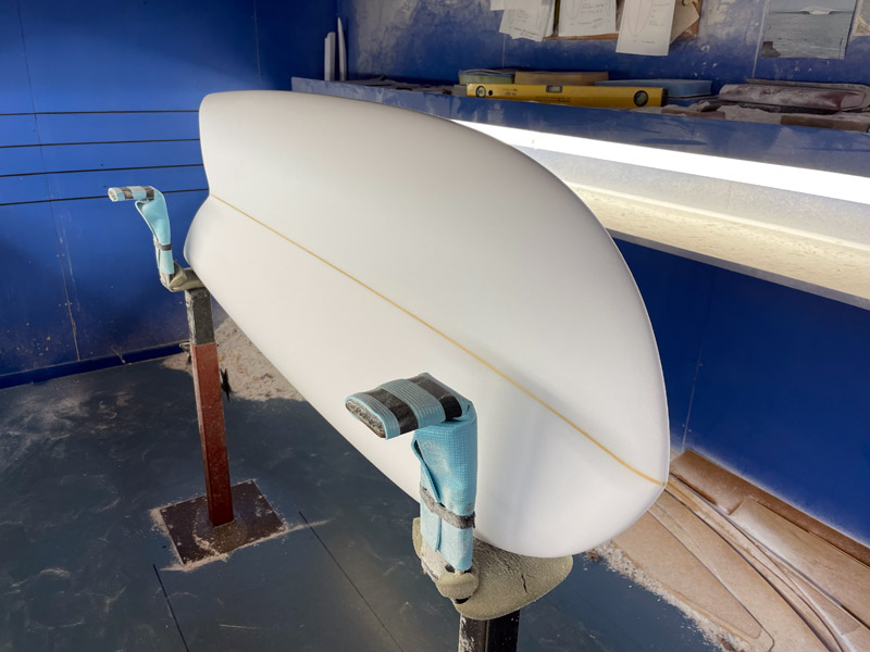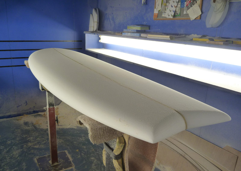 最初のシェイプと比べると、この二本目のシェイプの方がボリュームが多そうに見えます。ロッカーも入っているしフィンも違うので、どんな感じになってくるのか楽しみです。