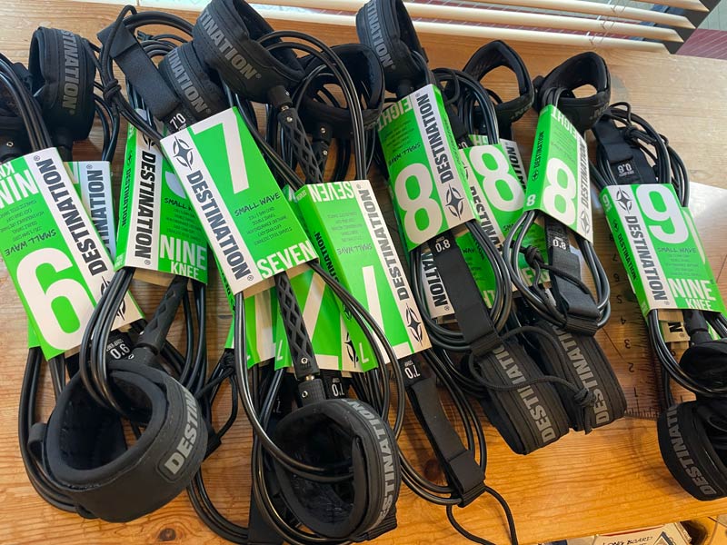 ミッドレングスサイズのサーフボードに乗る人が増えて、リーシュコードの長さのバリエーションも増えました。以前は、ショートボード用かロングボード用かの二択だったのですが、いまは大波用を除けば、6,7、8、9、10フィートとサイズのバリエーションが増えて、リーシュ屋さんも大変です。