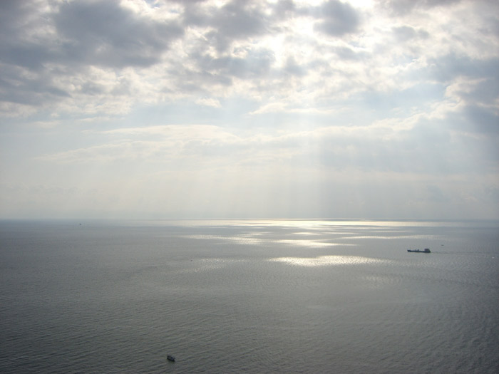外国船の出入りは長崎の南にある野母崎という岬で見張られていました。写真はその南端の山の上にある野母遠見番所からの眺望です。想像してみてください、この海を真っ白な帆を張った三本マストの外国船が静かに滑ってくる光景を。