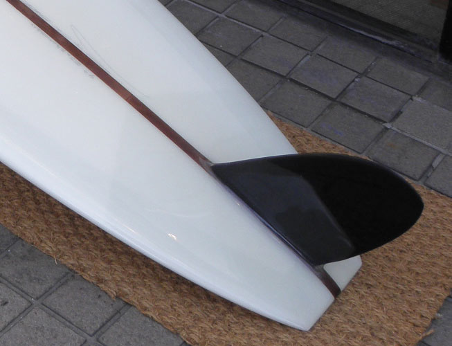 ハルのようにレールは薄くせずにフラットなボトムの面と組み合わせて、レールを使ってのダウンザラインの安定性とスピード、それにVEEのルースさをプラスするイメージ。フィンはシングルフィンです。