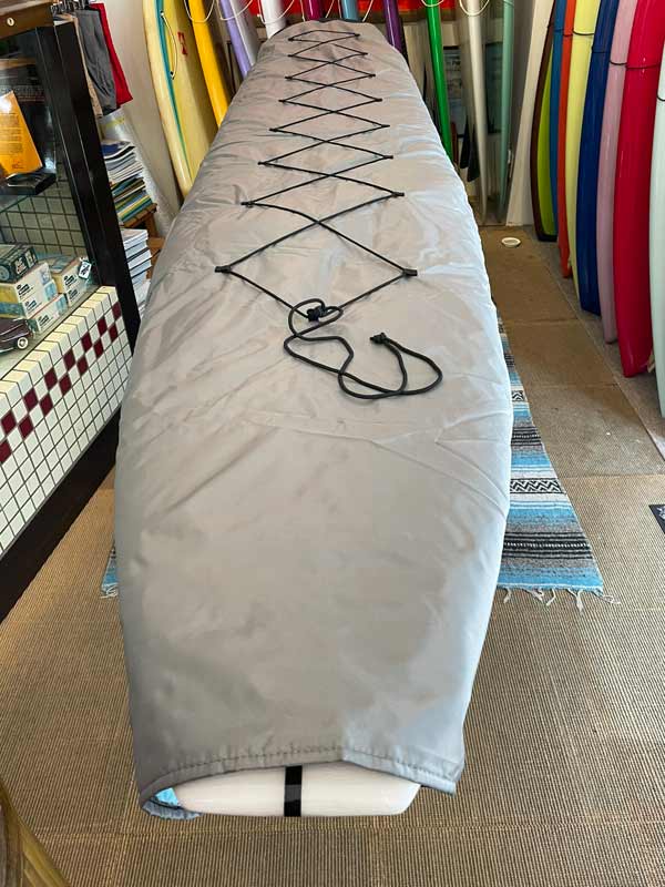 10’6”のグライダーが入るかな~とソフトケースを試してみたら、ちょっとはみ出します。ケースはどうしようと考えていたのですが、このくらいならはみ出したところをカバーしてあげれば使えそうだとテールガードを作ってみることにしました。