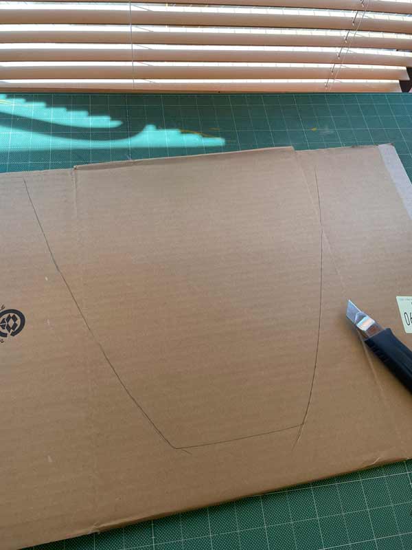 まずはテールの形を段ボールに写し取って切り抜きます。