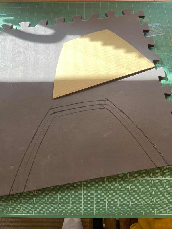 マットに形を写し、ふた回りほどサイズを広げて切り抜いたものを二つ作ります。
