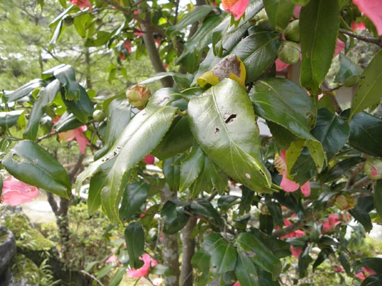 珍しい金魚椿。葉の先が金魚の尾のように三つに分かれています。近くにいた怪しいおじさんによると、この金魚椿の木は鎌倉に三本しか無いそうです。