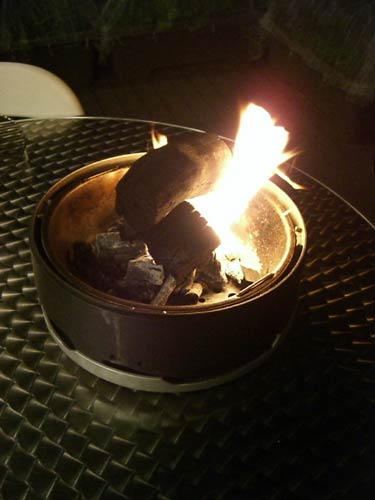 最近活躍してくれているコンロです。冬は薪の火、夏は炭。日常的に火遊びができるのは楽しいものです。炭を積み上げて着火材に点火。食器や飲み物の準備をしている間の15分ほどで簡単に火が熾きます。