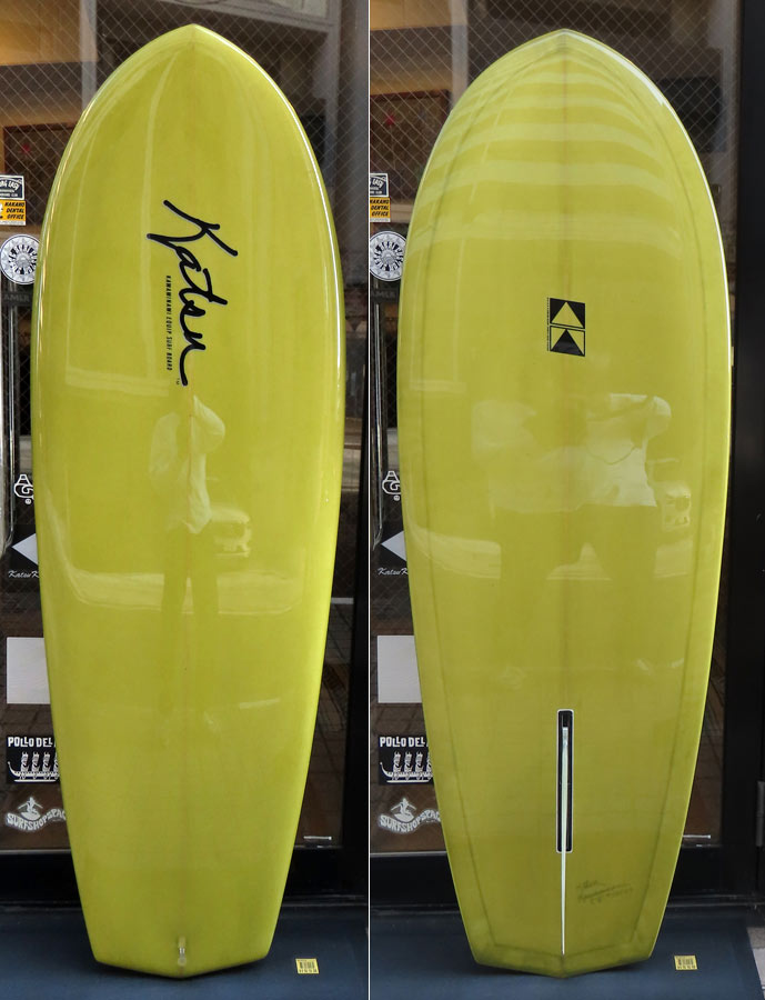 ボードデザインは、カツカワミナミサーフボードの完全オリジナル。カツカワミナミサーフボードのラインアップ、MINI5、プリモ、MINIモデルなどいくつかのモデルの良いところを融合させて生まれたオリジナルのデザインです。