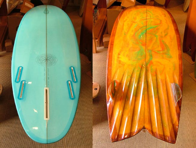 こんな感じでアイデアは付きませんが、お店にも自分のサーフボードのコーナーを作ってみようかと思っています。定期的に入れ替えて、オーダーのときの参考になるし面白そうでしょ?