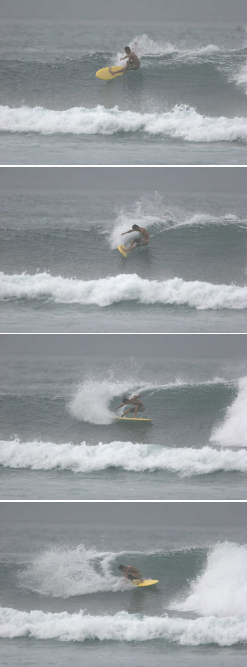 きれーいなカットバックです。「マイケル・ピーターソンみたいじゃん!」と言ったら「???それは誰???」状態だったそうです(笑)ジェネレーションギャップというやつです。マイケル・ピーターソンはケリー・スレーターをして「オレより上手」と言わしめた往年の名サーファーですよ~。