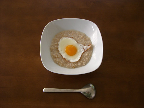6時半起床。波は無さそうなのでゆっくりとリペア工場へ行くつもりで朝ご飯。いつものメニューはこれです。ロールドオートの水煮に目玉焼き乗せ。醤油をかけていただきます。形がきれいな目玉焼きを作るのには卵も採れたてではなく4~5日日数が経ったものを使うと白身がほどよく広がります。本当に採れたて新鮮なものは広がらないのでポーチドエッグなんかに使うとうまくできます。卵の世界も奥が深いのです。