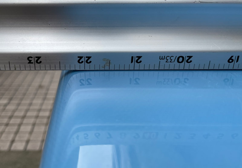 赤いラインで正解でした。フィンの位置とアウトラインとのバランスが数値的にばっちりです。ラウンドノーズで重心が前よりになってはきますが、動きは悪くないと思います。
