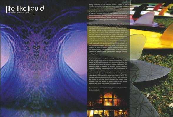 波乗りシーンを並べた通常のサーフフィルムとは一味違うデヴィッド・ラスタヴィッチの世界です。ボーナス映像でラスタがディックバンストラーレンのカーボンフィッシュとクアッドの説明をしつこいくらいにしてくれるシーンはディックバン&ラスタファンにはたまらないでしょう。もちろんラスタの波乗り&チューブシーンもたっぷり見れます。しかしラスタの身体のバネと柔らかさはスゴイ…。