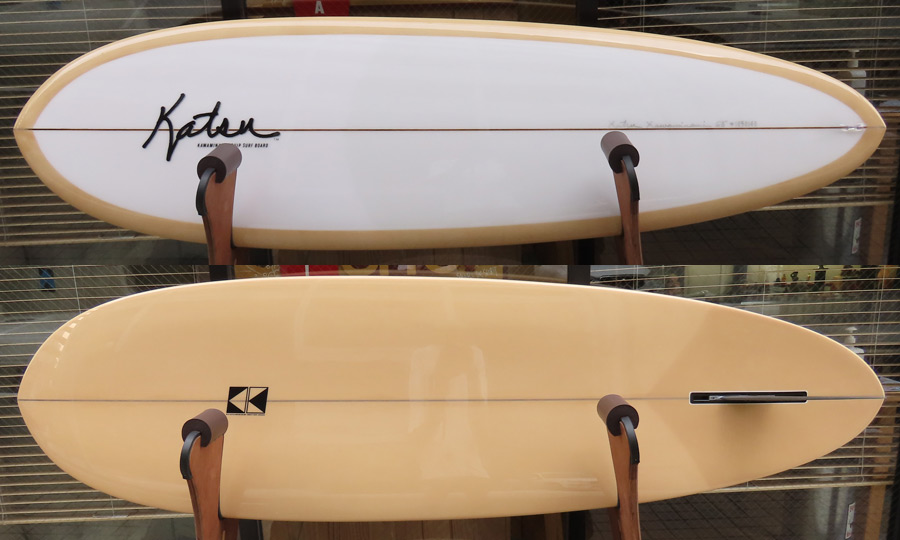 MOON TAIL TOTO 8’8”。傘寿を迎える、葉山のレジェンドサーファーへのシェイプです。先日も海でお会いしましたが、80歳とは思えない元気さで次々と波を捕まえておられました。