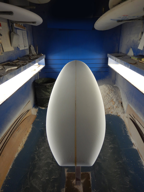 新しいロッカーのブランクスでのテストシェイプという意味合いもあります。オーダーのシェイプに使い始める前に、シェイプして実際に乗ってみるのです。