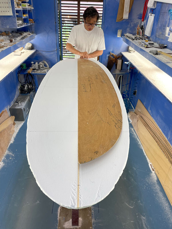 それを確かめるためのテストシェイプなのですが、サーフボードを作る楽しさというか、醍醐味のひとつだと思います。