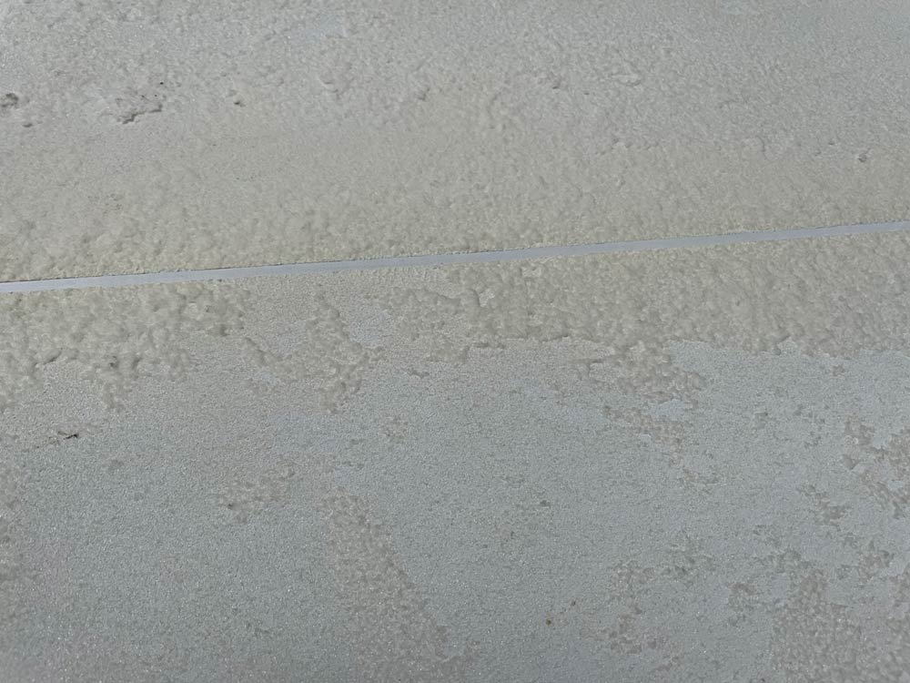 剥がしたラミネートにくっついてくるフォームの量は画像の上のデコボコに見えるところが多く、下の平らに見えるところはほぼラミネートのみです。下の平らに見える部分は比較的しっかりとしていましたが、上の部分のラミネートについてきているフォームは触るとポロポロと崩れてきます。