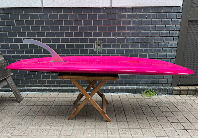 それから、もうひとつの変化です。AC SHAPEで作ってもらった8フィートのツインピン、ユーズドでお出しします。どうもやっぱりツインフィンは私には合わないみたいです。フィッシュなら普通に乗れるのに、ツインピンとなるとなぜかダメなんです。