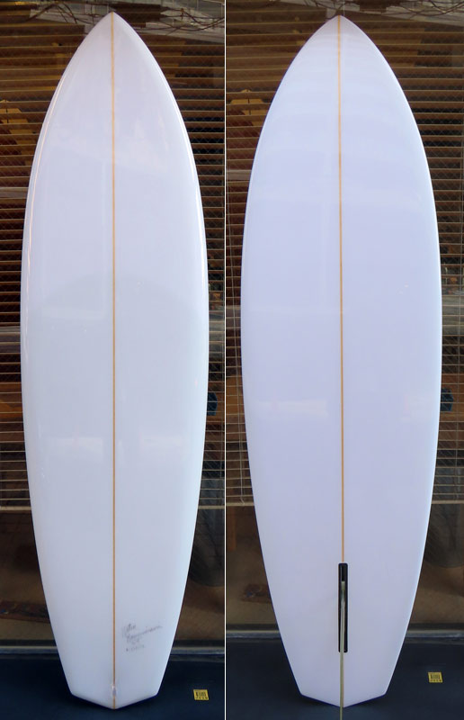 もう7~8年前のことです。今作るとしたら、時間が経った分(歳取った分)だけ長くして、6’8”くらいか。アウトラインはプリモフィッシュか、6’8”ならMINIと同じような丸いノーズにしたら、滑り出し速そうです。