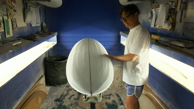 ショップのオープンは2001年。それ以来、ロングボードをベースに、フィッシュ、ボンザー、シングルフィン、ニーボード、パイポとさまざまな種類のサーフボードを作り、試してきました。