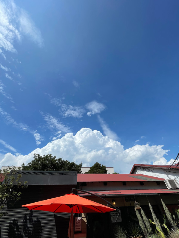 海の近くのシェイプルームから見た北の空。積乱雲が見事にもくもくと立ち上がっていました。昨日は豪雨を降らせた雲です。
