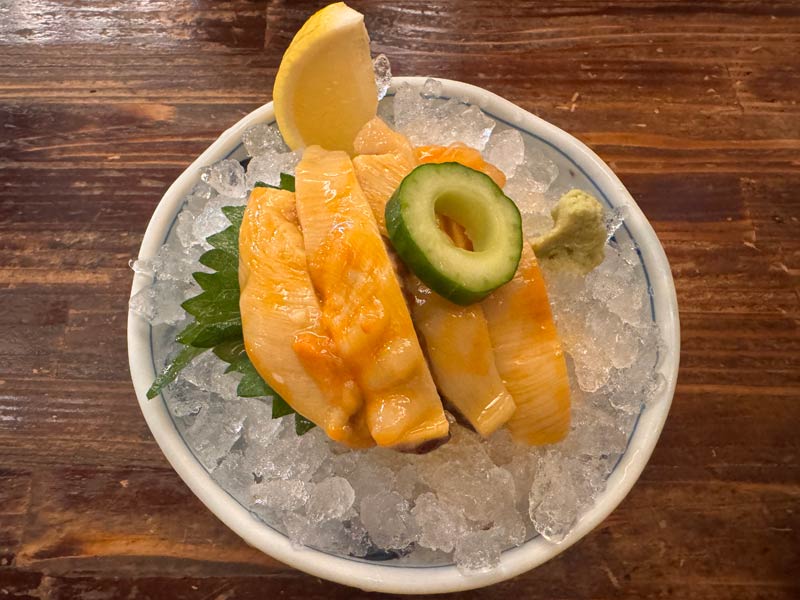 じゃじゃ麺もっと食べたかったのですが、他にもたくさんあるんです。ホヤの刺身は私が知っているのとは別物。